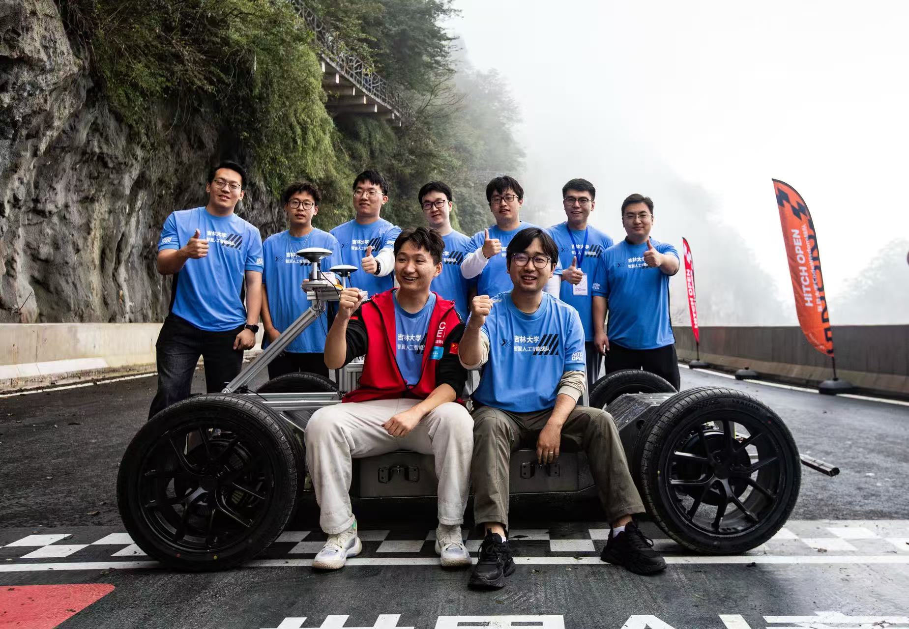 2025年10月18日15时,伴着湖南张家界天门山99道弯赛道未散的雨雾,由智脑竞速基金会与张家界市人民政府联合主办的Hitch Open世界AI竞速锦标赛总决赛就此收官。在为期一个月的决赛赛程中,由吉林大学汽车工程学院宋东鉴、韩嘉懿、孙博华老师指导,包括队长薛经纬同学在内的七名研究生同学组成的智翼人工智能战队最终获得了实车竞速赛G20组第一名、实车竞速总决赛第三名、总成绩季军的佳绩。