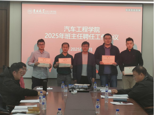 2025年11月3日下午,汽车工程学院2025级班主任聘任仪式及工作会议在南岭校区汽车工程大楼顺利召开。学院相关领导和科室负责人,以及2025级全体新聘班主任列席参会。会议由副院长王军年主持。